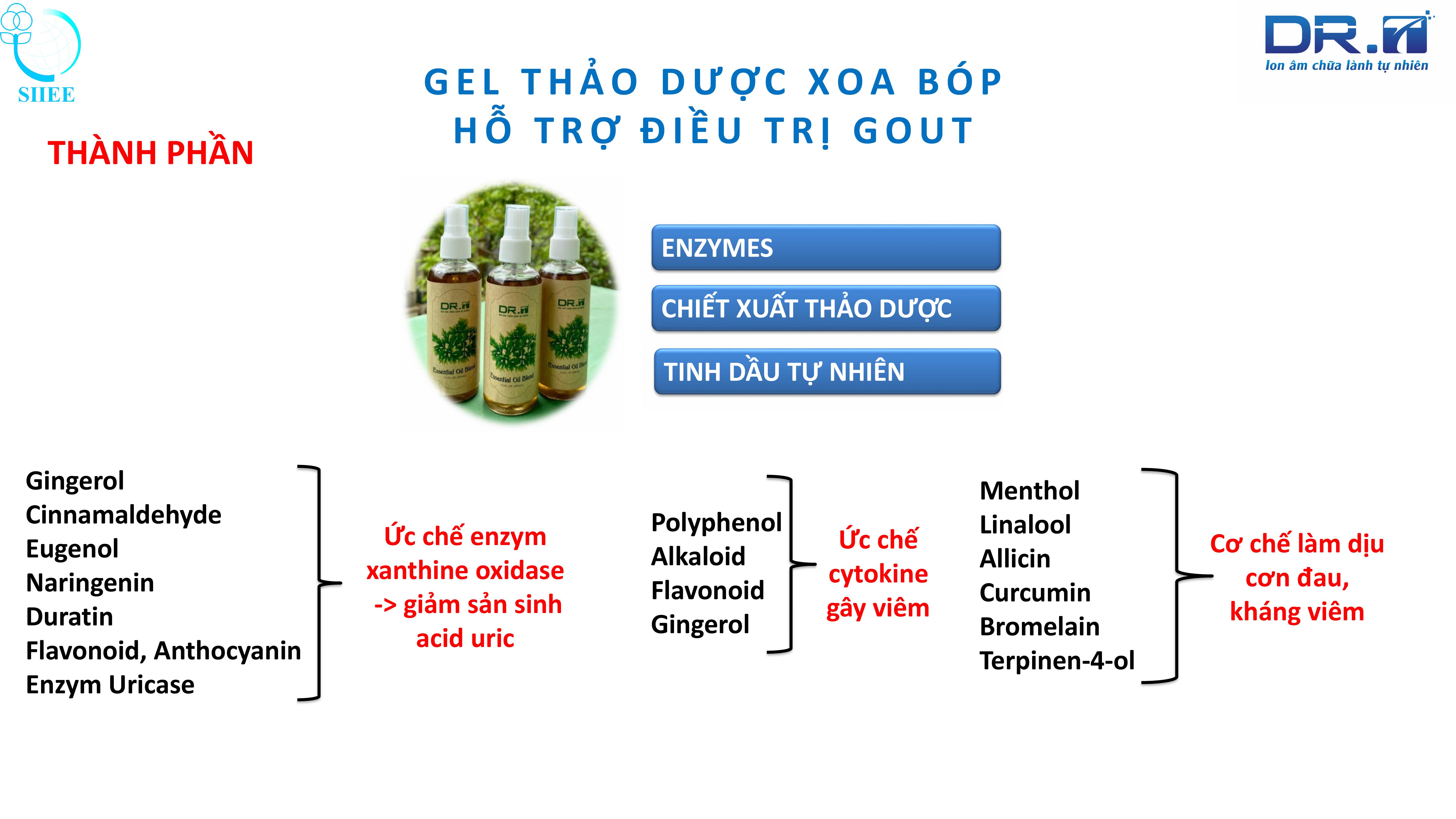- Chiết xuất từ các loại tinh dầu thảo dược quý hiếm: Dịch chiết ngải cứu, dịch chiết đương quy, tinh dầu tràm gió, dịch chiết nghệ, tinh dầu khuynh diệp, tinh dầu gừng, tinh dầu oải hương, tinh dầu sả chanh.
